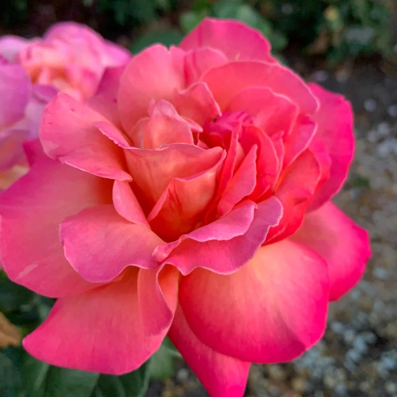 With a gorgeous blend of phlox pink and canary yellow double blooms—boasting a 40-45 petal count—this Chicago native is a deeper toned mutation of the famous Peace Rose displaying the best color east of the Rockies! Once gracing your prized borders or pretty patio containers, Chicago Peace Hybrid Tea Rose requires a meer monthly feeding of rose food until late summer to keep up appearances. This formal invitation to butterflies will not only impress aesthetically, Its extended bloom time will afford endless opportunities for bouquet-gifting and in-home enjoyment. Rosa cv. 'Chicago Peace'