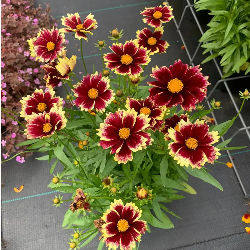 The colors really pop on this floriferous coreopsis. Cherry red blooms accented by vivid yellow margins are set against a backdrop of healthy, mounded foliage that, unlike other coreopsis varieties, doesn’t fall open in the center. A robust perennial with exceptional disease resistance and heat and drought tolerance, it blooms repeatedly all season long. Premium size. Coreopsis grandiflora ‘MVNC1904’ PP35403